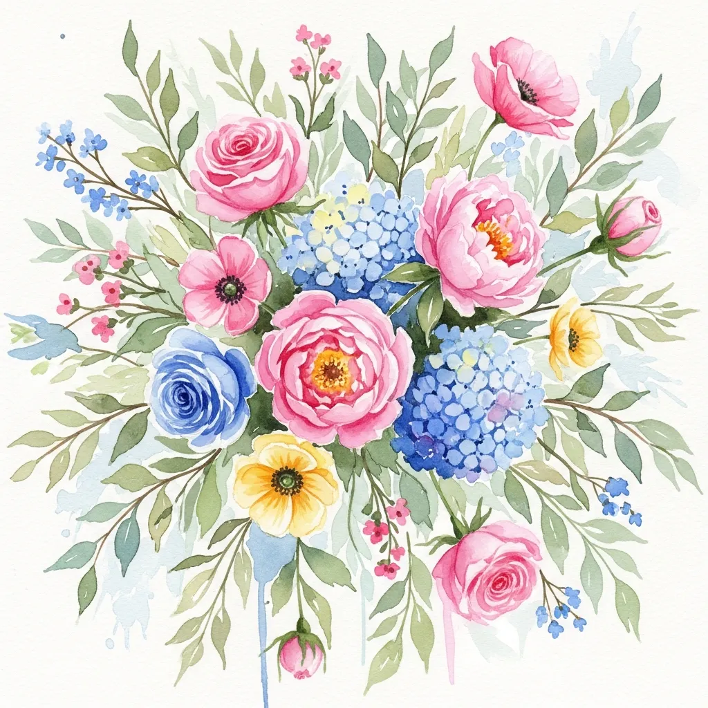 Delicate petal transparency and precise color control demonstrate refined watercolor skills and botanical observation.